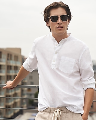 Slim Solid Linen Popover Shirt Express